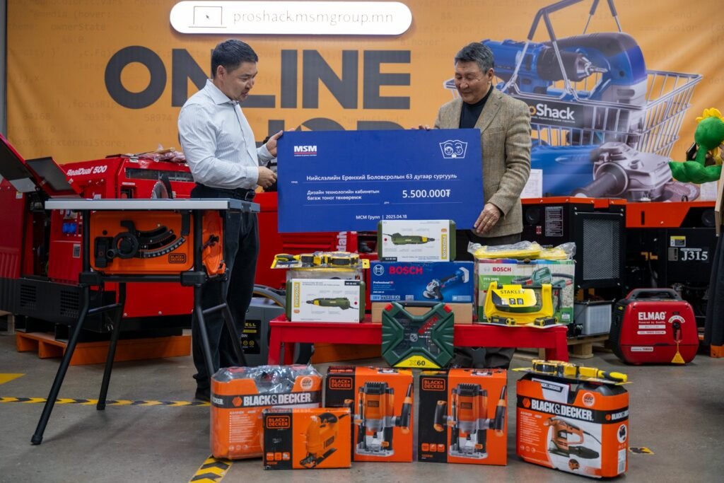 МСМ Групп нь нийгмийн хариуцлагын хүрээнд тус сургуулийн Дизайн технологийн кабинетад 5.5 сая төгрөгийн өртөг бүхий гар багаж хэрэгсэл, тоног төхөөрөмжийг хандивлалаа. Энэ нь суралцагч бүрийн оролцоо, хүртээмж болон бүтээмжийг сайжруулах зорилготой бөгөөд цаашдын мэргэжлийн боловсрол олгох, сонголт хийх, багаж хэрэгсэлтэй ажиллах дадал хэвшилтэй болох бололцоог нээж өгч буй явдал юм. Та бүхэндээ баярласан талархлаа илэрхийлэхийн ялдамд ажил үйлс тань өөдрөг бүтэмжтэй байхын ерөөл өргөе.